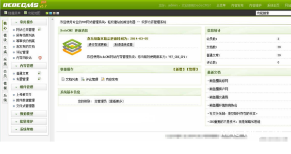 (DEDECMS后臺(tái)界面示意圖)